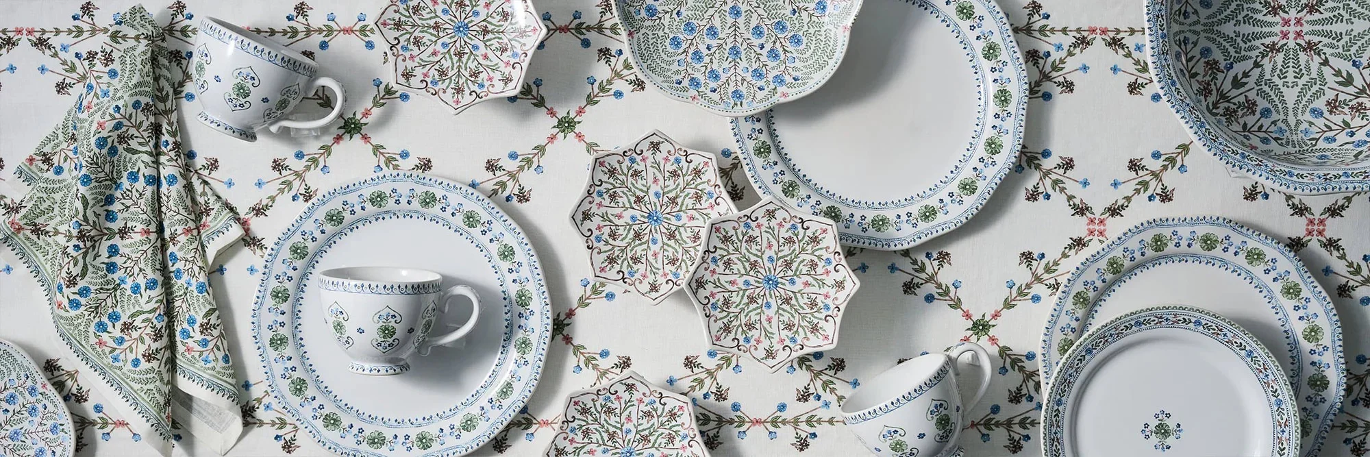 Inspirada en los frescos descoloridos por el sol y el romance de Nápoles, esta reinvención en pistacho y rubor de una de las líneas de artículos para el hogar más queridas de La DoubleJ