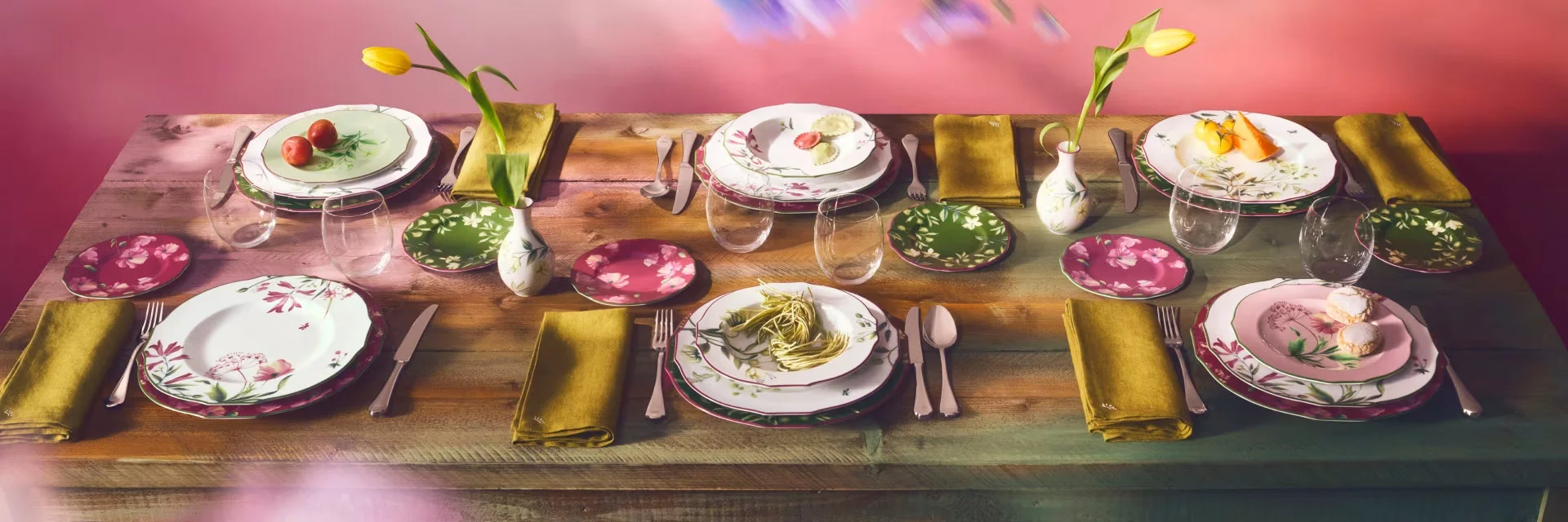Diva expresa el encanto del pasado con un concepto actual y moderno. Los elementos de la línea de vajilla y regalo se convierten en protagonistas en la mesa y en los espacios del hogar gracias a líneas sinuosas combinadas con colores pastel.