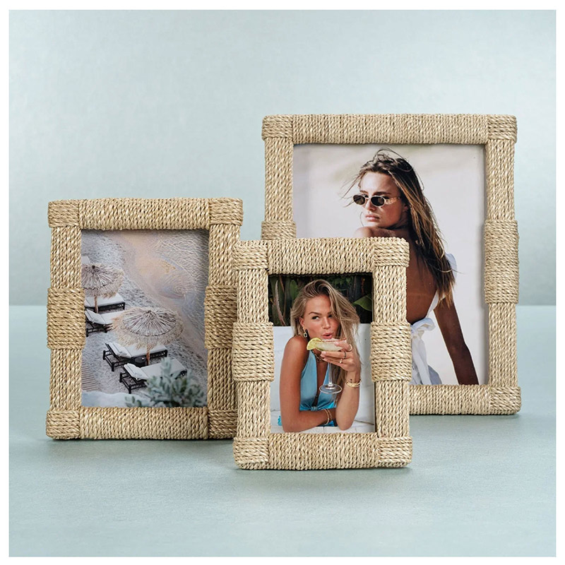 115380La cuerda de abacá se ha tejido con esmero para crear este marco único, tan fresco como la brisa del mar. El patrón tejido aporta un toque de detalle a cualquier espacio y realza aún más cualquier foto que coloques en él.
