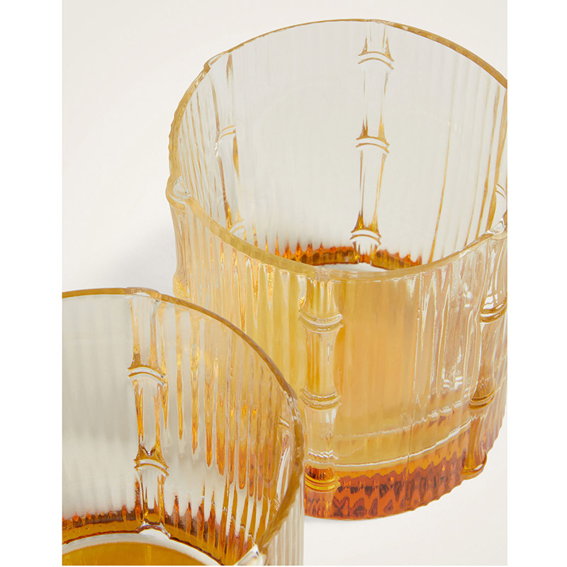 Combinando el arte clásico italiano del aperitivo con la energía relajada del bar de una isla paradisiaca, este impresionante set de vasos Tumbler llega con un cristal ámbar claro sutilmente modelado y exquisitamente elaborado. Consigue el set completo de Bamboo Bar para disfrutar de vibraciones vacacionales de alta energía sin importar la temporada o el entorno.