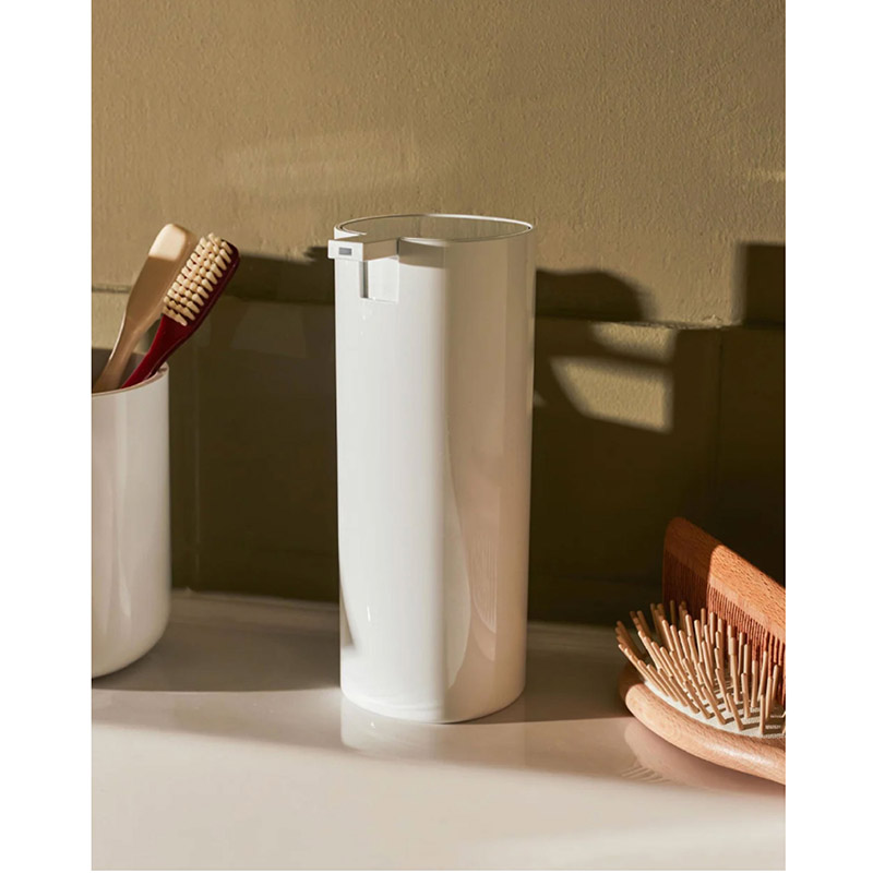 Dispensador de jabón líquido en resina termoplástica, color blanco.