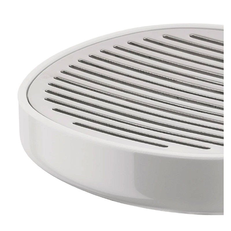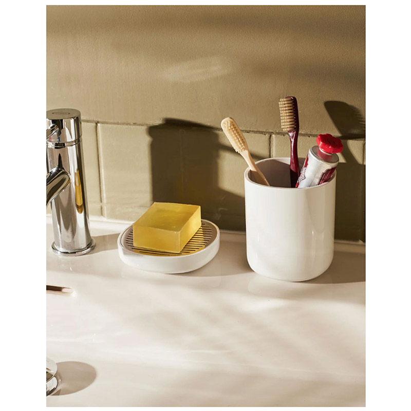 • Jabonera en PMMA, color blanco y acero inoxidable 18/10 pulido espejo.