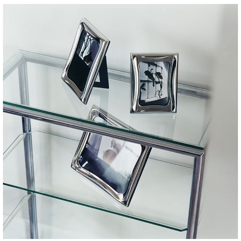Con las características formas onduladas de la codiciada colección Cobra y fabricado en acero inoxidable pulido espejo, este marco de fotos ofrece una forma singular de exhibir tus recuerdos más preciados. Un innovador sistema magnético lo mantiene unido, permitiendo colocarlo sobre una mesa tanto en vertical como en horizontal, o bien colgarlo fácilmente en la pared.