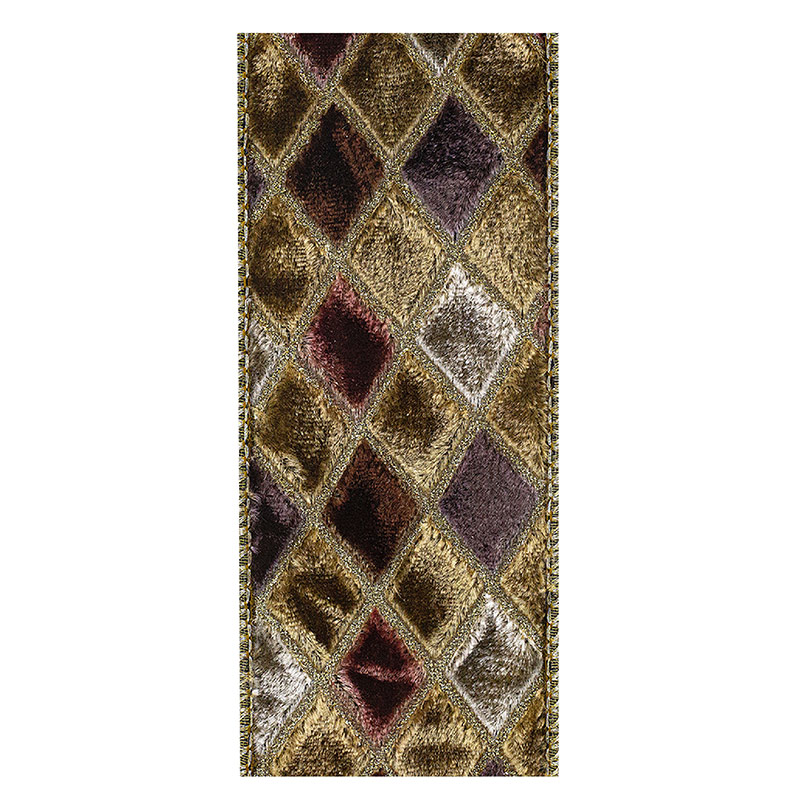 Nuestra cinta Diamond Velvet Jewel Deluxe con borde alambrado en color topo luce un exclusivo patrón de rombos con un tacto suave y aterciopelado. Esta cinta de 6,35 cm (2-1/2 pulgadas) incluye bordes alambrados para dar forma y se presenta en rollos de 9,14 m (10 yardas) para proyectos de venta al por mayor de alta gama.