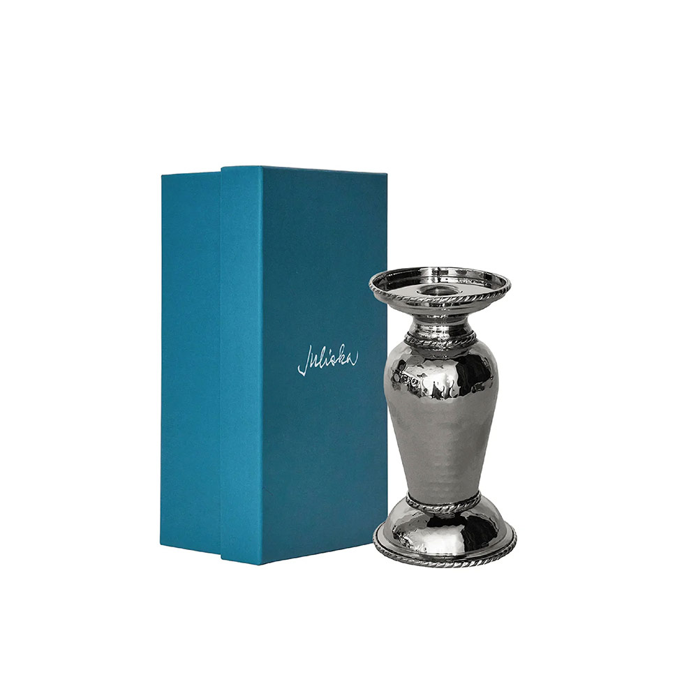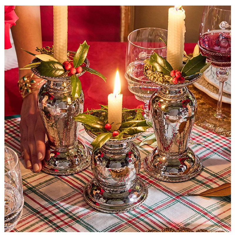 115185Nada crea un ambiente como la luz de las velas, ¡y vaya si Graham sabe cómo deslumbrar! Hecho a mano en acero inoxidable martillado para un efecto brillante, adornado con nuestro característico motivo de hilo y pulido para un brillo excepcional, este candelabro es el toque final perfecto tanto para el día a día como para las grandes ocasiones. Mejor aún, está diseñado para sostener velas cónicas o de pilar.