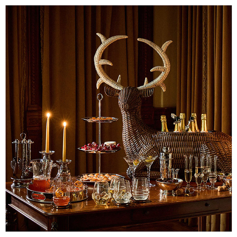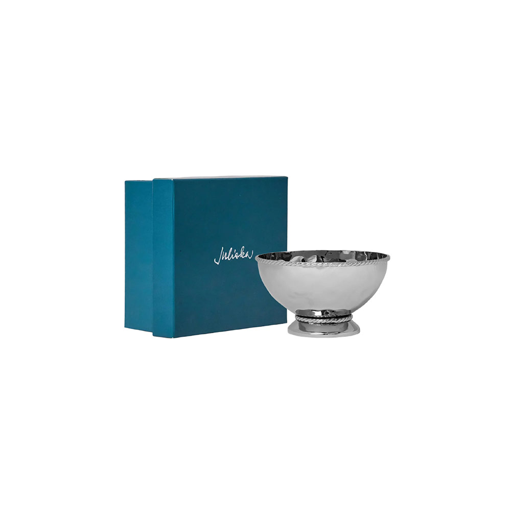 Hecho a mano en acero inoxidable martillado, adornado con nuestro característico motivo de hilo y pulido para un brillo excepcional, este precioso y reluciente bol eleva instantáneamente el nivel de tus cócteles.