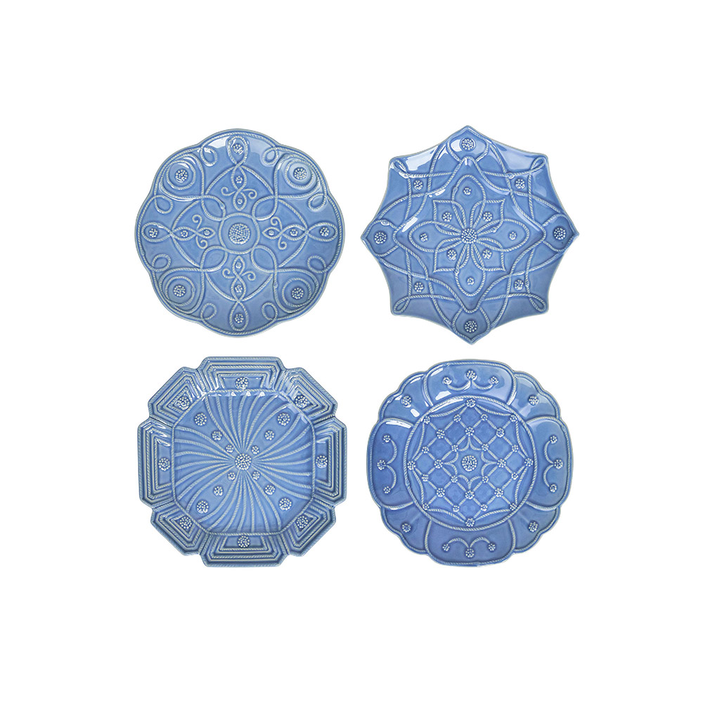 Los lujosos detalles de nuestras icónicas bayas e hilos en formas majestuosas anuncian este juego de platos de fiesta. Cada plato rinde homenaje a cuatro de los jardines más bellos del mundo: Landriana en Italia, Villandry en Francia, Alcázar en España y Heligan en Inglaterra, y está revestido con un exclusivo esmalte verde.