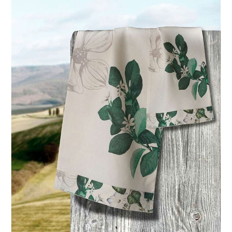 Juego de Toallas compuesto por 2 piezas en puro lino estampado digitalmente con estampado floral.