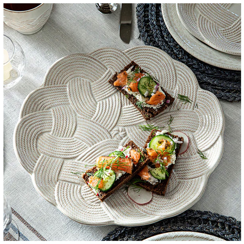 Simbolizando protección, amor y una vida larga y feliz, el nudo místico ha sido apreciado durante generaciones por los marineros como tributo a sus familias y al mar. Con sus espirales trenzadas entrelazadas en un acabado blanco lechoso, este gran plato bajoplato ofrece una rica calidez texturizada, una silueta escultural y una estética atemporal a la mesa, ideal para combinar con otros estampados o como una hermosa bandeja para servir.