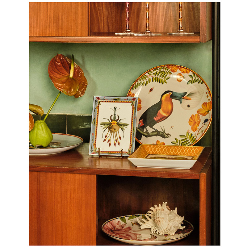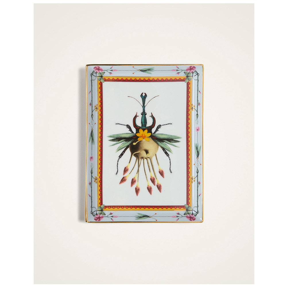 115373¡Qué plato! Esta bandeja de porcelana, adornada con nuestro diseño Leafbug, que inspiró el desarrollo de nuestra colección Fantastic Creatures con el artista Beto Val, está diseñada para todo. Llénala con frutos secos, patatas fritas o aceitunas para tu aperitivo. Colócala en la consola de la entrada para guardar llaves y monedas. O quizás, al estar elaborada por los mejores artesanos de Verona con un borde de oro de 18 quilates pintado a mano, debería ser un lugar de honor en tu tocador para exhibir tus joyas más preciadas. Sea cual sea tu estilo, esta bandeja para baratijas está hecha para guardar tesoros y para ser apreciada.