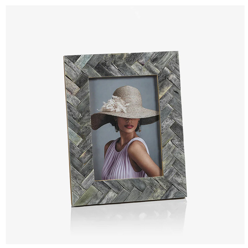 Muestra tus recuerdos más preciados con elegancia con el marco de fotos Zodax Mayfair de hueso tejido. Este refinado marco presenta un intrincado patrón tejido que añade un toque de sofisticación y encanto a tu hogar. Su delicada artesanía en hueso refleja una destreza excepcional, lo que lo convierte en el accesorio perfecto para tus fotos favoritas.