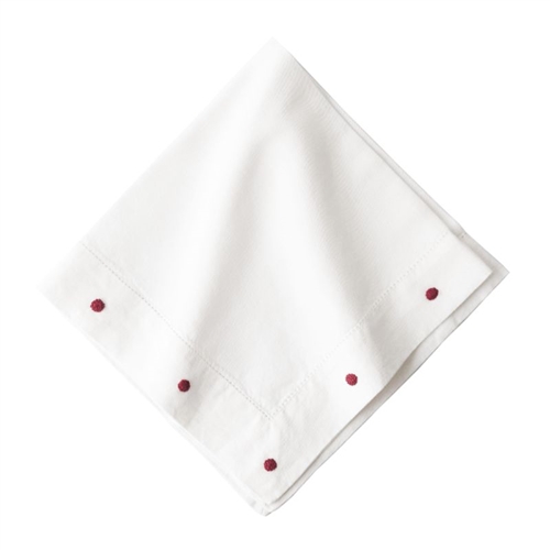 La servilleta Juliska Berry Ruby bordada forma parte de la colección Juliska Tableware. Juliska es el fabricante de gres cerámico fino, cristal soplado a mano, cubiertos de acero inoxidable y melamina para entretenimiento informal. Como resultado, no hay dos productos Juliska idénticos, lo que hace que cada pieza sea única.