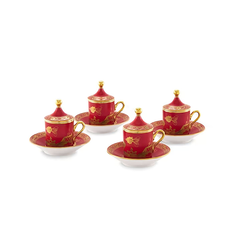 Tazas y platillos para café espresso para cuatro personas. Colección Oriente Italiano.