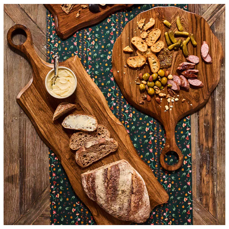 Estas tablas de servir de formas orgánicas están inspiradas en la palabra portuguesa «Puro», algo verdaderamente atractivo en su estado natural y espontáneo. Hechas de madera de teca tallada a mano, estas piezas rústicas, esculturales y elegantes podrían haber sido fácilmente encontradas en un castillo rural o en una casa de campo junto al mar. Perfectas para fiestas, cenas informales y para atender a un público numeroso.