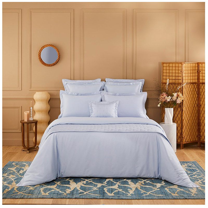 La excepcional calidad del satén de algodón Yves Delorme se aprecia en la delicadeza de su tejido suave y ligero. La profundidad y luminosidad de los colores se revelan en el acabado sedoso y la perfección de nuestras técnicas de tejido.