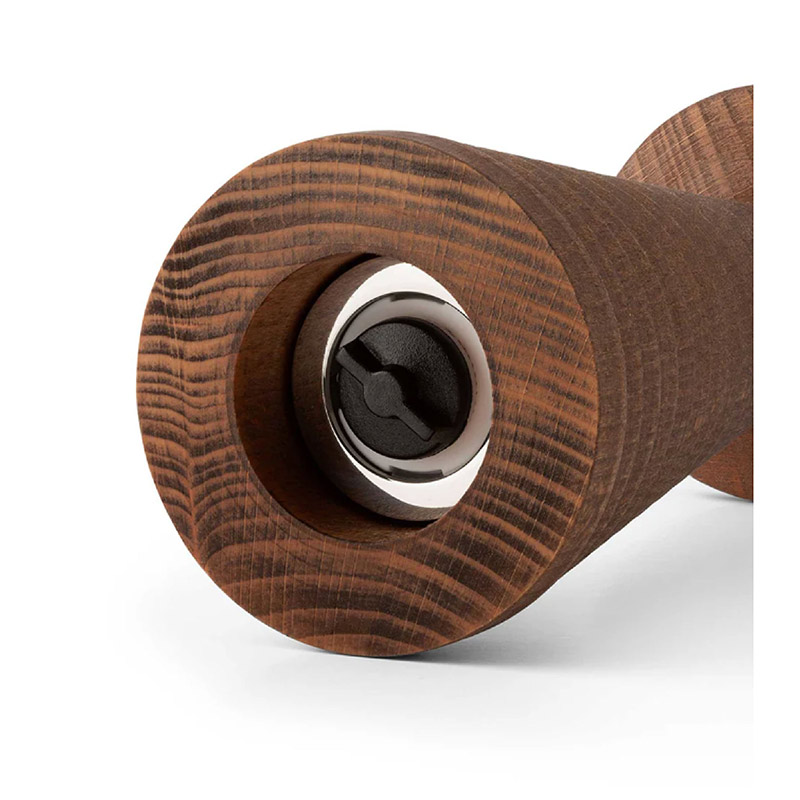 • Molinillo de sal, pimienta y especias en madera de haya teñida de color marrón.