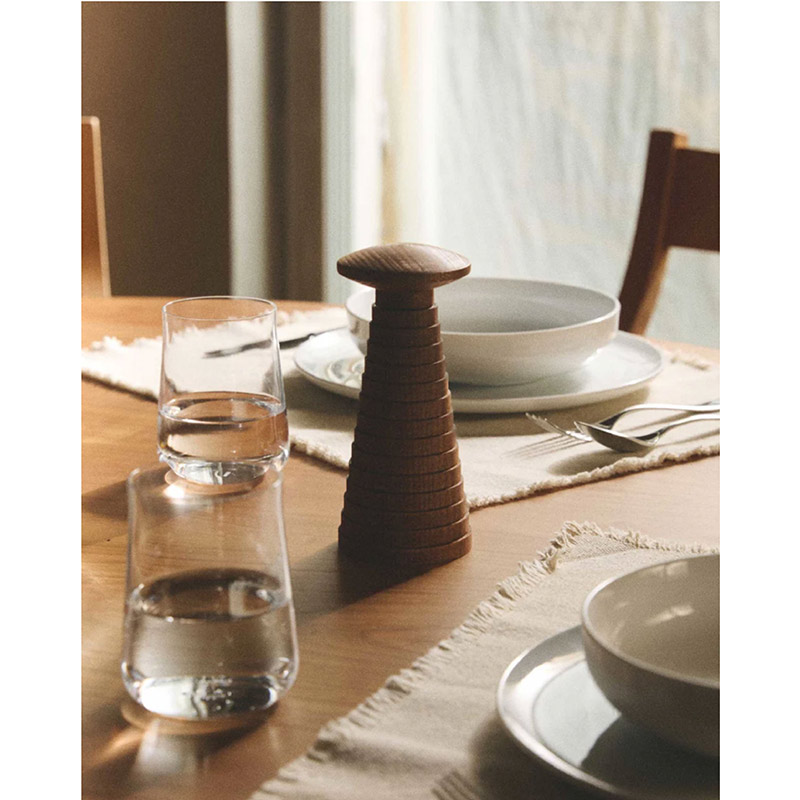 Con el molinillo Yucatán, Michele De Lucchi aborda esta tipología de mesa manteniéndose fiel a la mecánica clásica de torsión, donde el molinillo se sostiene con ambas manos. Mediante la elección de una esencia como la haya, el diseñador expresa sus habilidades como escultor de la madera, un lenguaje expresivo que cultiva desde principios de la década del 2000. El fino acabado con aceite natural, que hace que cada pieza sea única y agradable al tacto, es un homenaje a la artesanía.